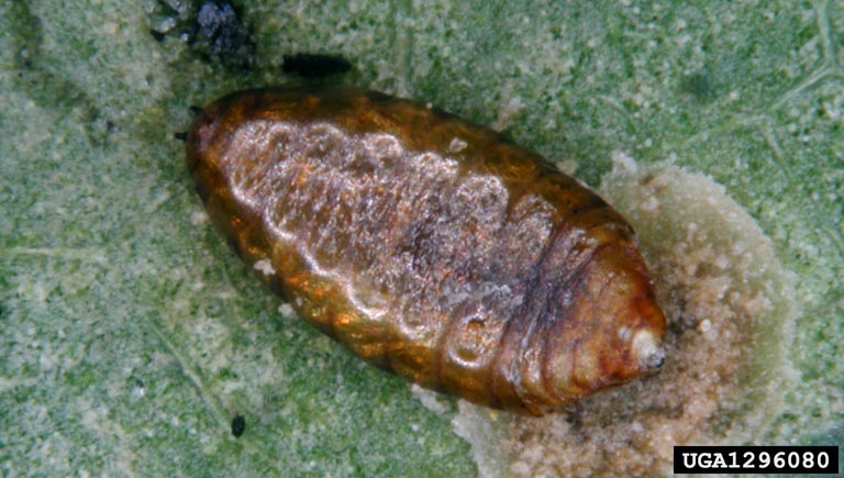 L'épiderme déchiré marque certainement le trou de bec de la mésange bleue, principale espèce prédatrice de la larve qui entend le bruit qu'elle fait lorsqu'elle s'agite dans sa loge © Par XCalPab - Domaine public, https://commons.wikimedia.org/w/index.php?curid=10742120