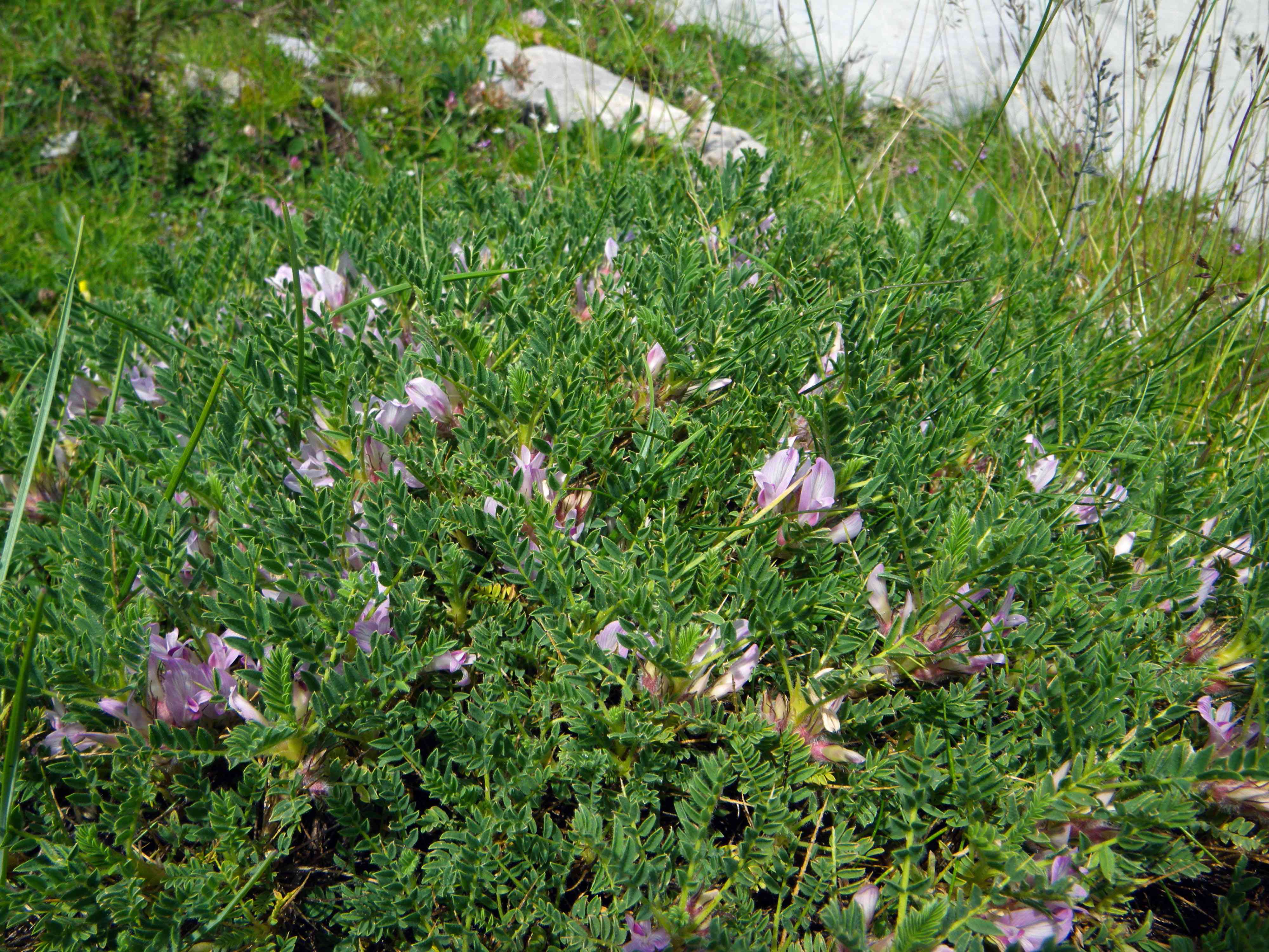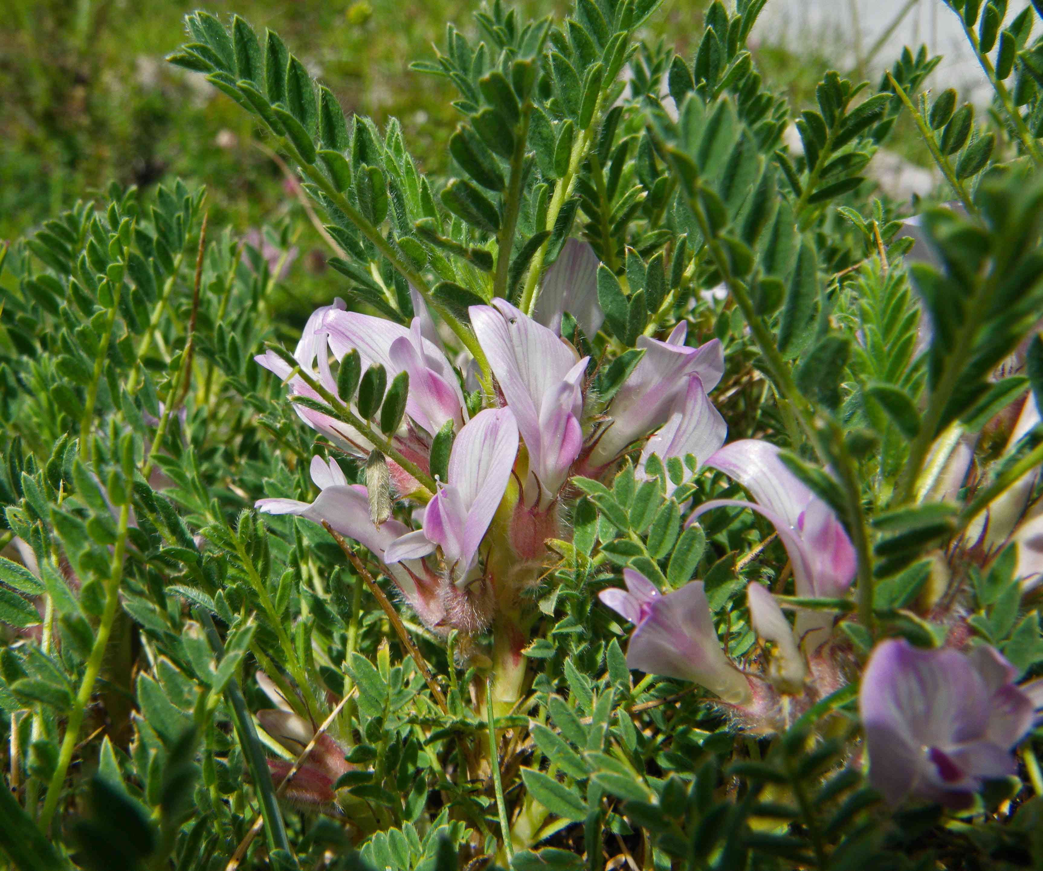 Cette astragale, appelée également "coussin de belle-mère" est facilement reconnaissable aux longues et nombreuses épines qui parent sa tige. Il s'agit en fait des pétioles indurés de l'année précédente. Ses fleurs blanches sont dressées, en grappes brièvement pédonculées. - PNE