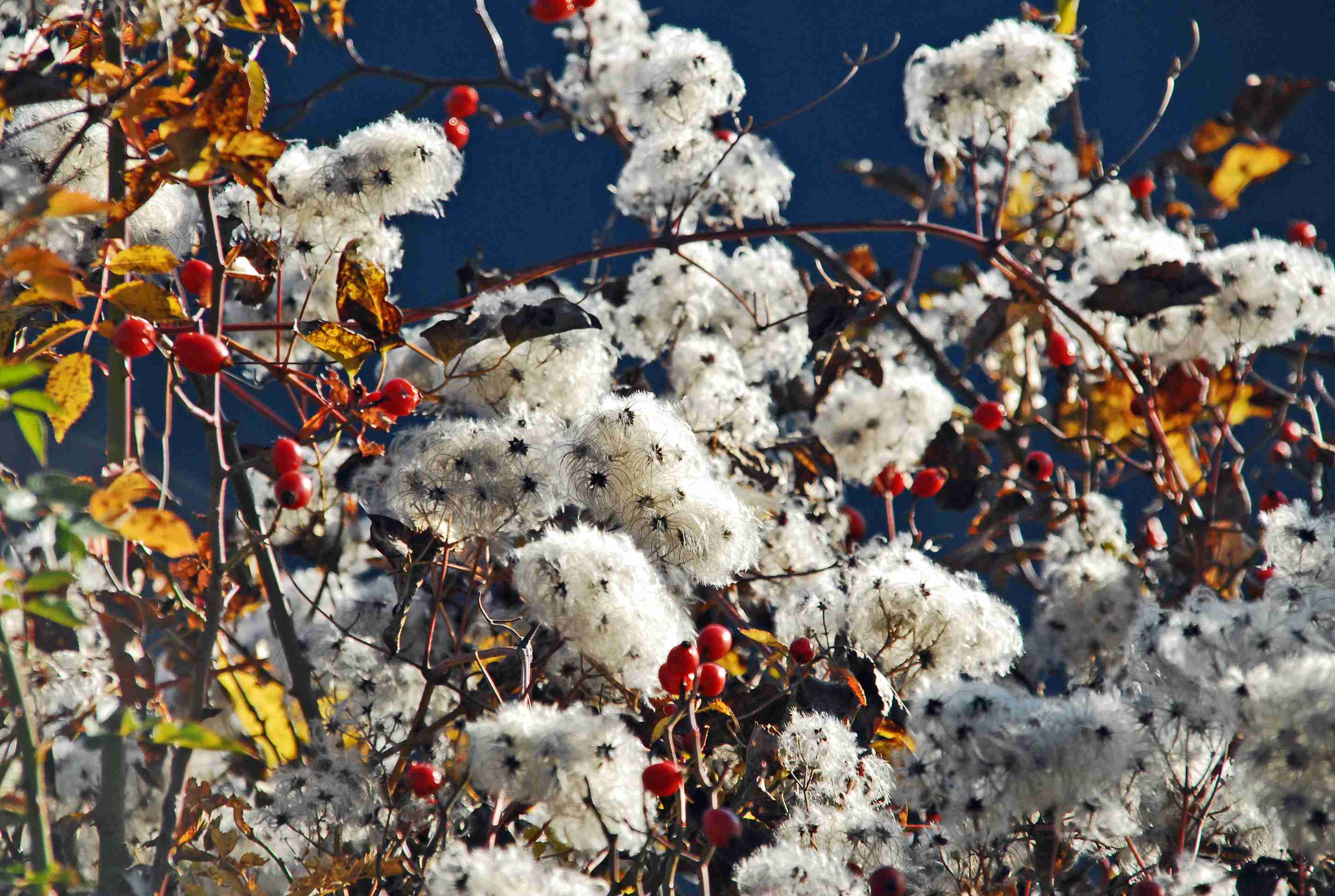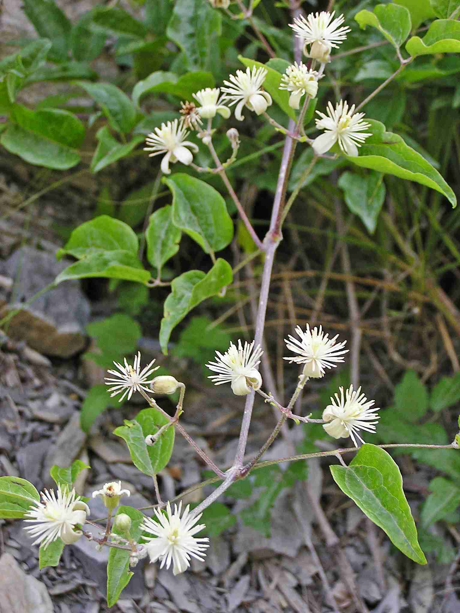La Clématite des haies est une liane très envahissante qui grimpe jusqu’à la cime des arbres. Ses fleurs blanches donnent naissance à des fruits secs plumeux, les akènes. L’aigrette plumeuse favorise leur dissémination.