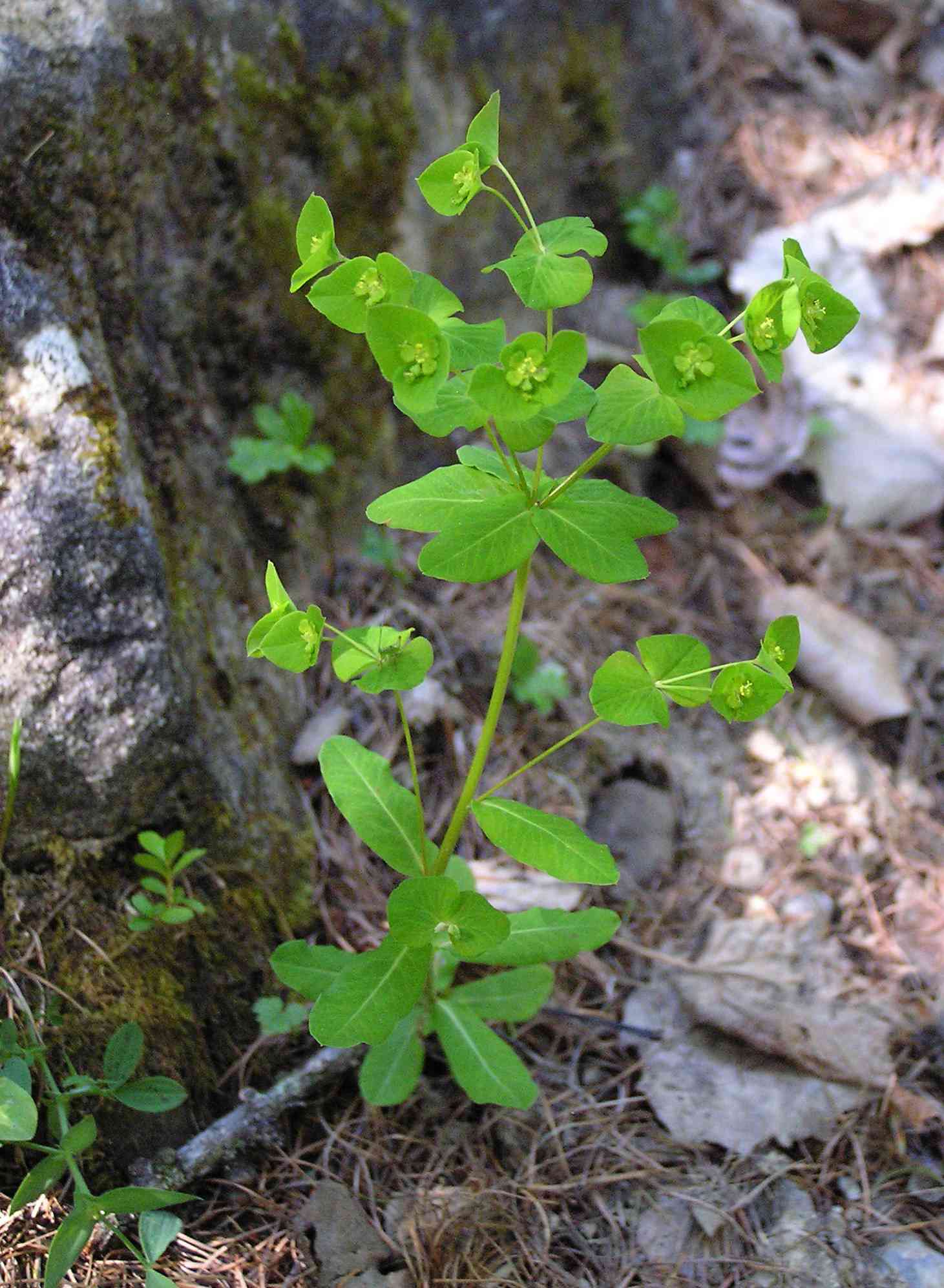 Formes harmonieuses et arrondies. Comme toutes les euphorbes, elle contient un latex toxique et irritant. A maturité, les glandes de son involucre deviennent pourpres.